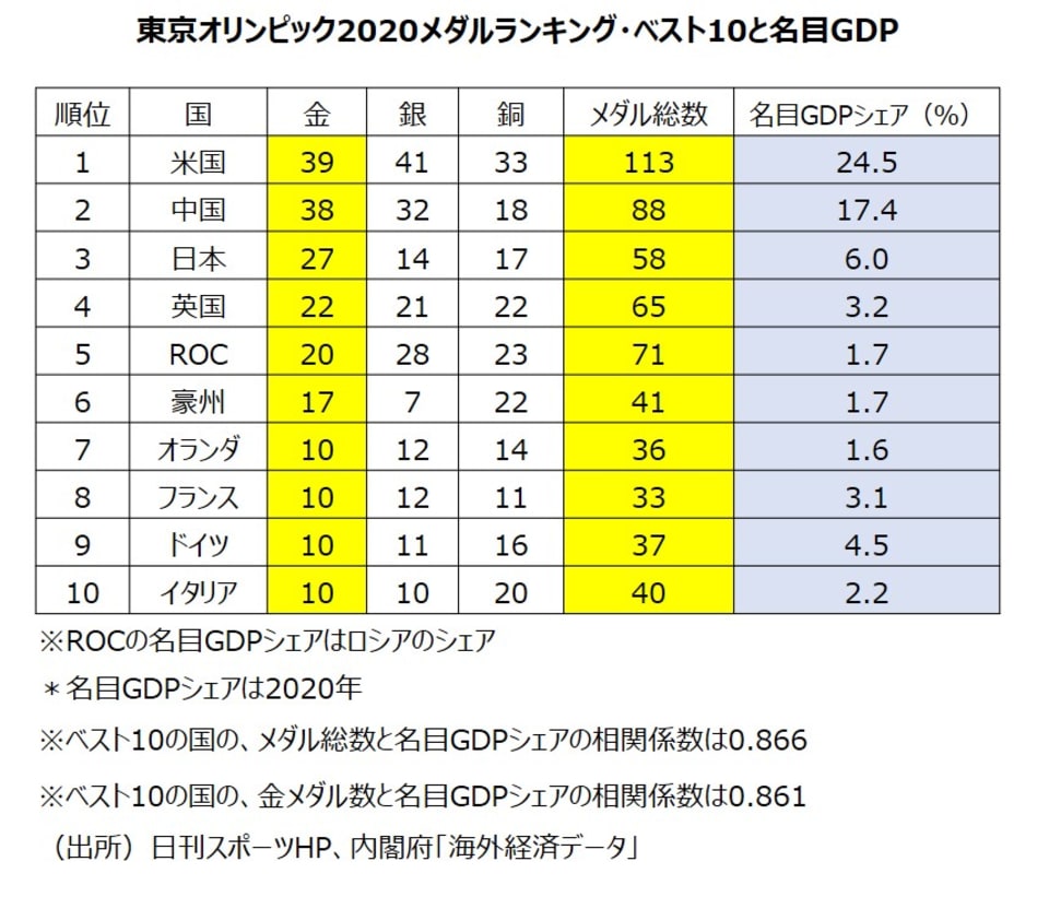 東京オリンピック2020メダルランキング・ベスト10と名目GDP ( 1 / 2 )