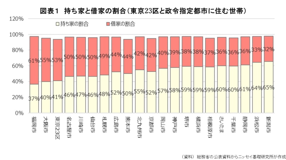 図表1 持ち家と借家の割合(東京23区と政令指定都市に住む世帯) ( 1 / 3 )