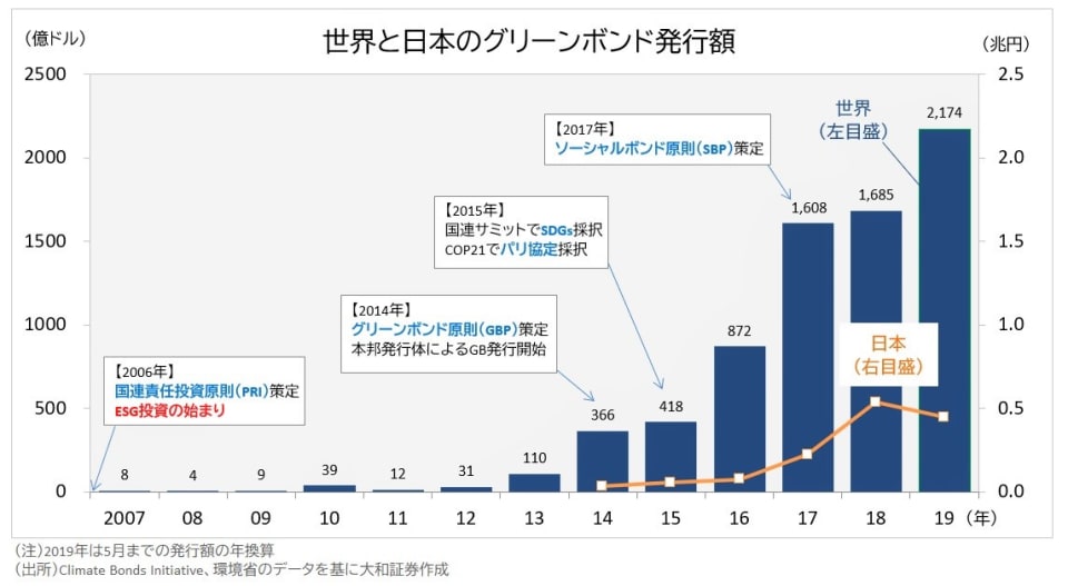 世界と日本のグリーンボンド発行額 ( 2 / 2 )