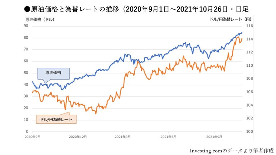 原油価格と為替レートの推移(2020年9月1日〜2021年10月26日・日足 ( 1 / 1 )