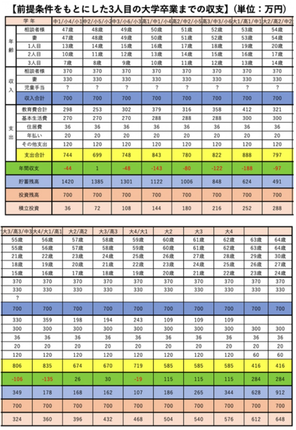 前提条件を元にした3人目の大学卒業までの収支 ( 4 / 4 )