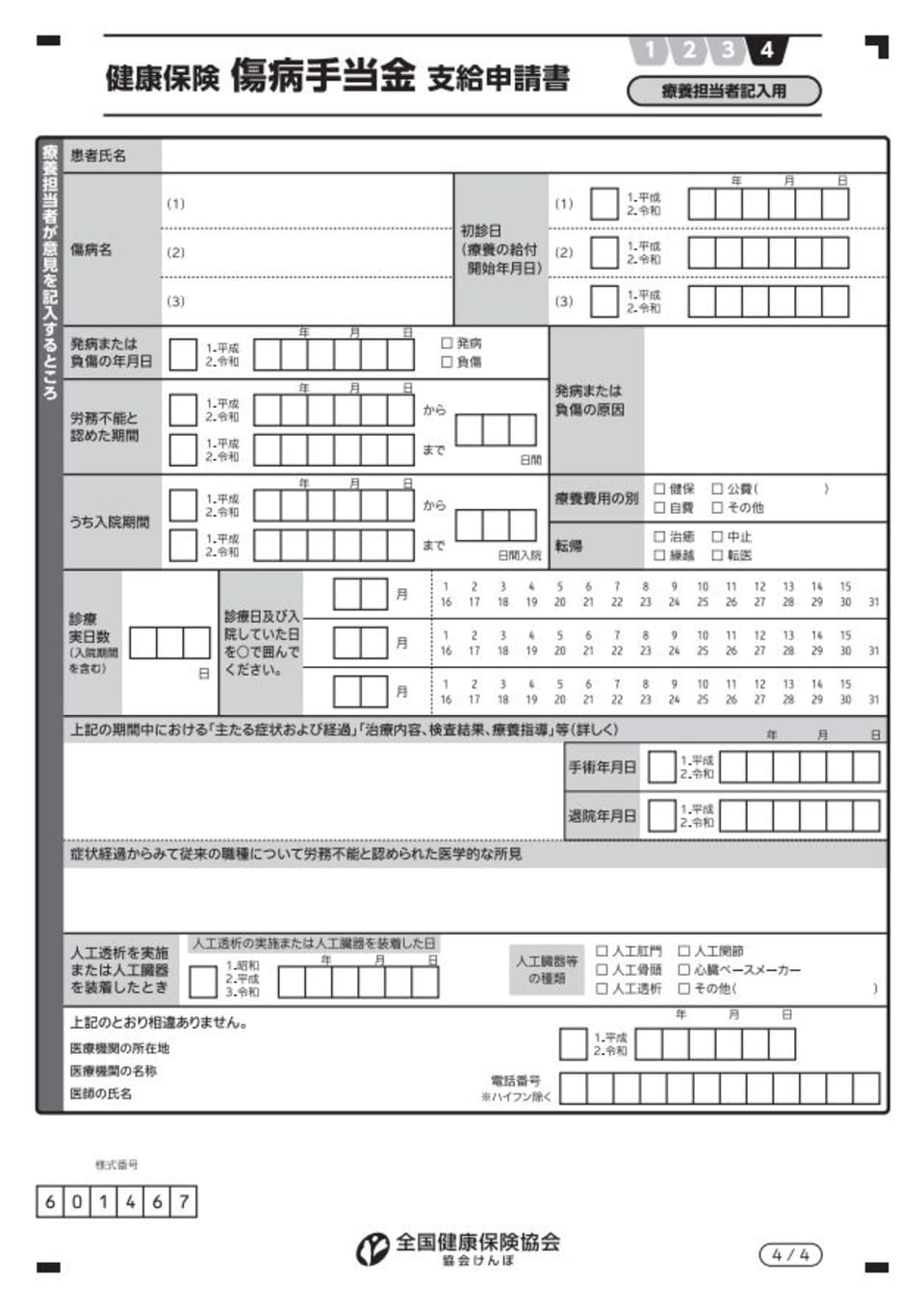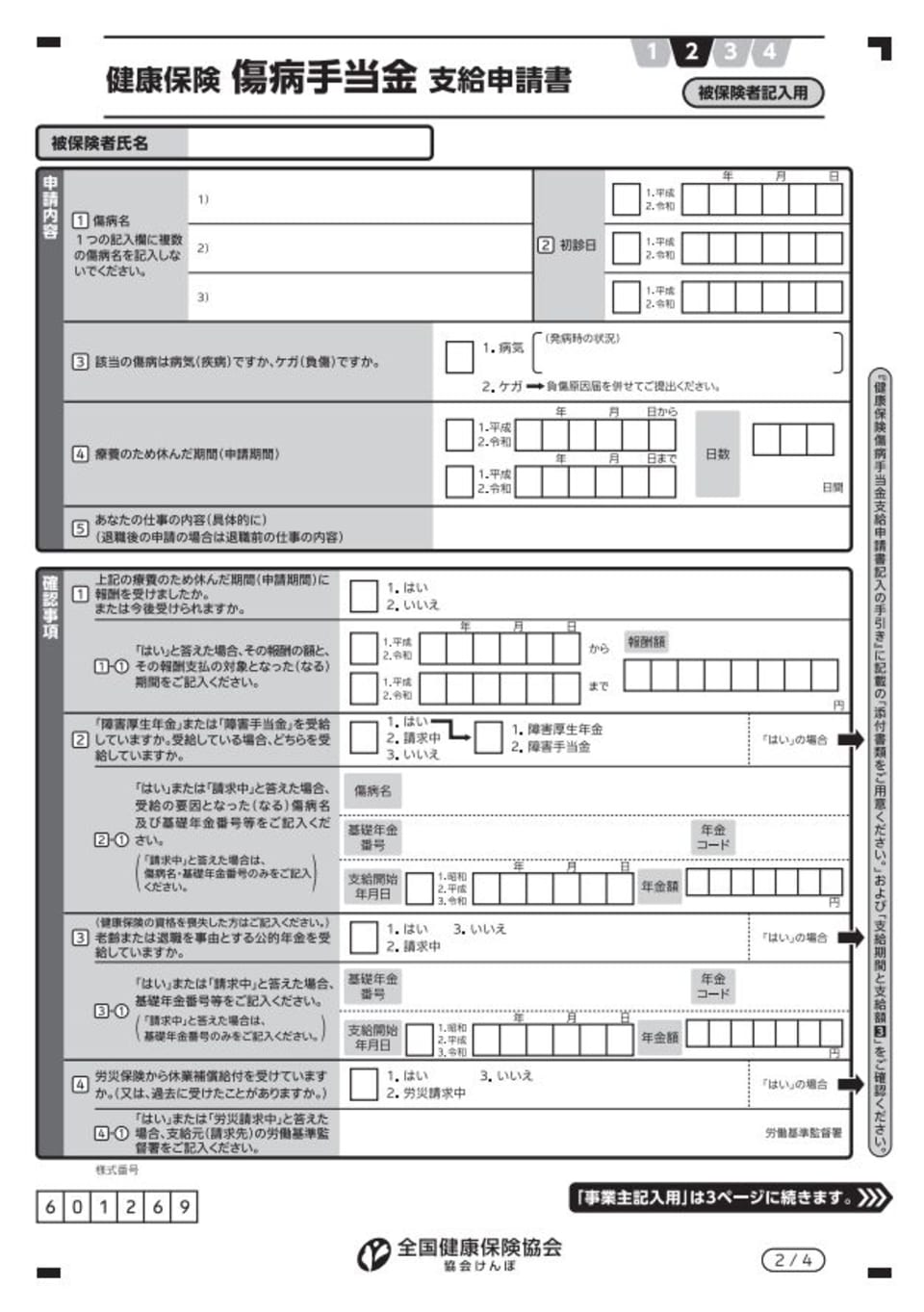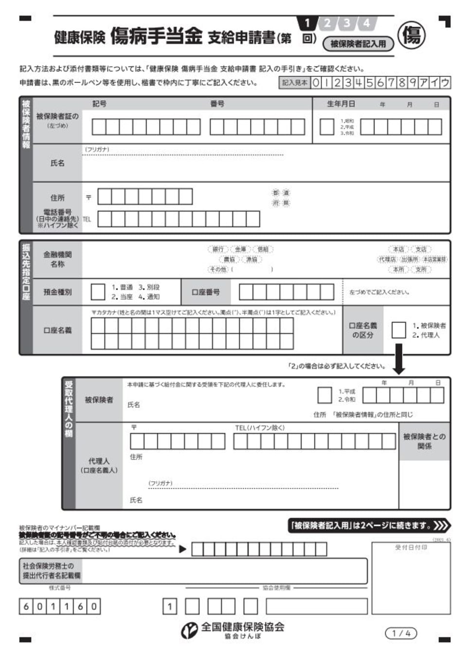傷病手当金の申請書1枚目 ( 1 / 6 )