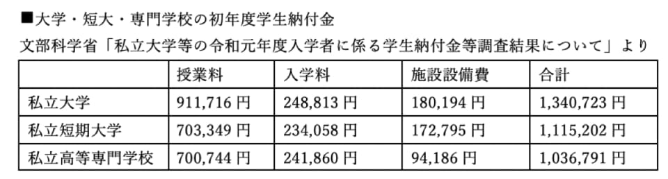【表】大学・短大・専門学校の初期年度学生納付金 ( 2 / 3 )