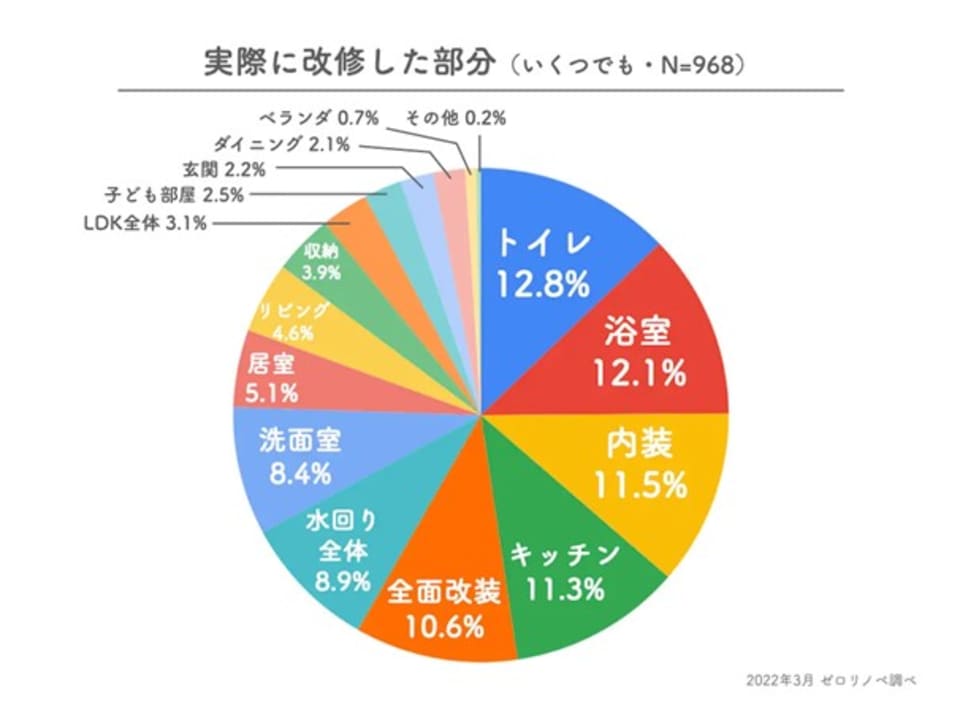 実際に改修した部分(いくつでも・N=968) ( 2 / 3 )