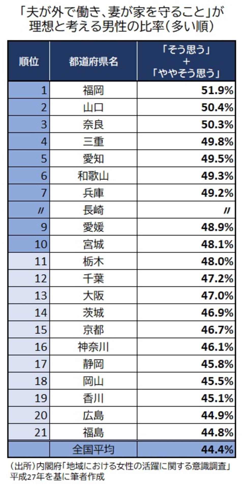 働く妻に寛容な都道府県ランキング ( 1 / 2 )