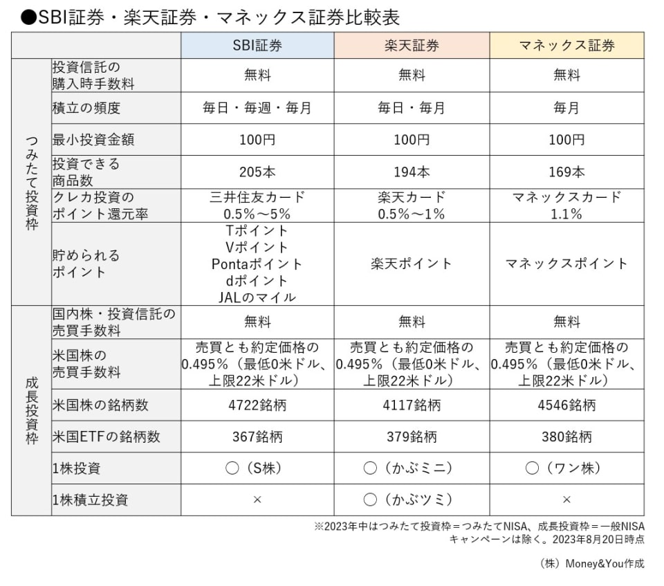 SBI証券・楽天証券・マネックス証券比較表 ( 1 / 1 )