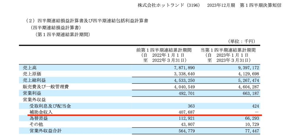ホットランド「2022年12月期 決算短信〔日本基準〕 ( 1 / 6 )
