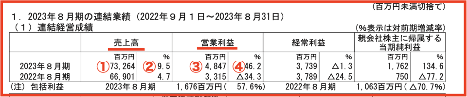 ジンズ「2023年8月期業績(連結)」 ( 1 / 2 )