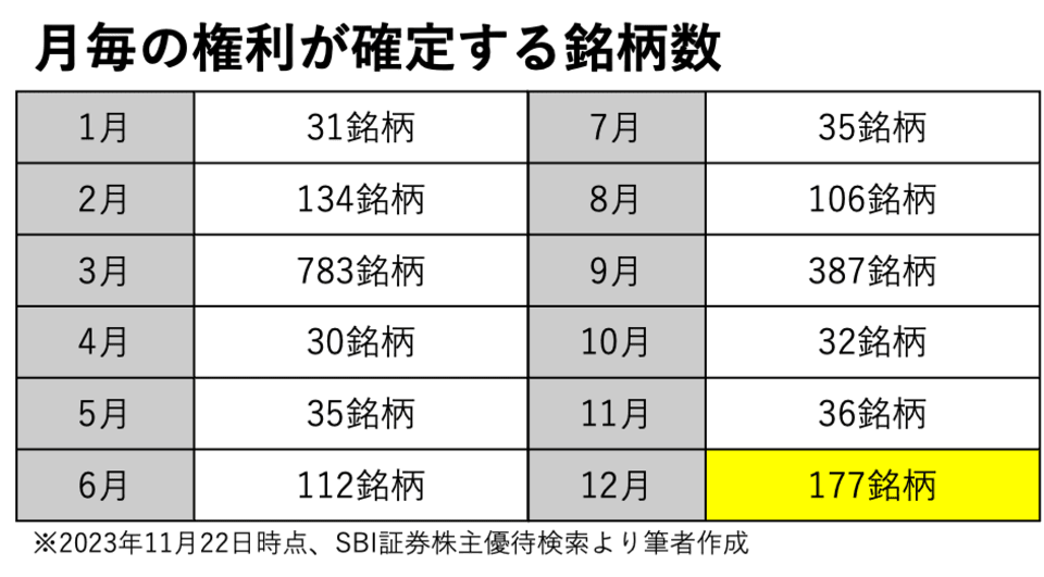 権利が確定する銘柄数 ( 1 / 12 )