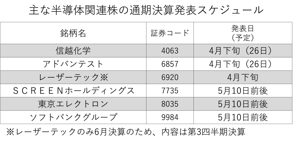各企業の半導体関連株通期決算発表 ( 1 / 1 )