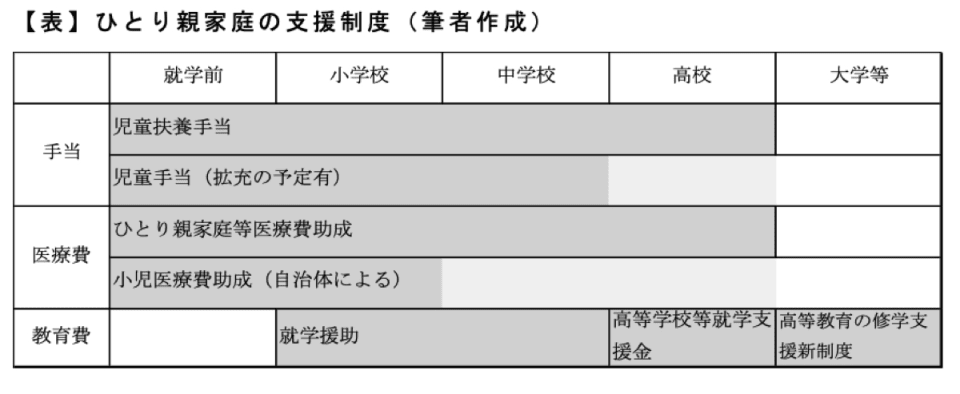 【表】就学前から大学までのひとり親家庭への支援制度 ( 1 / 1 )