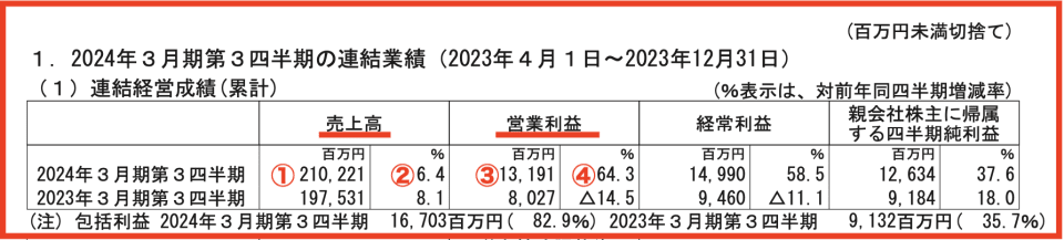 オカムラ 「2024年3月期 第3四半期決算短信〔日本基準〕(連結) 」 ( 1 / 6 )