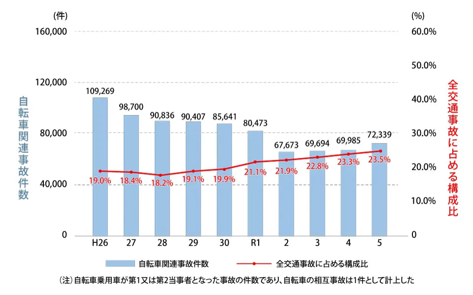 2023年中の自転車関連事故 ( 1 / 2 )