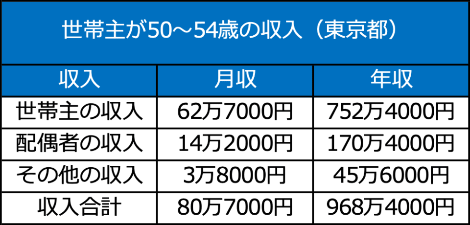 世帯主が50~54歳の収入(東京都) ( 1 / 5 )