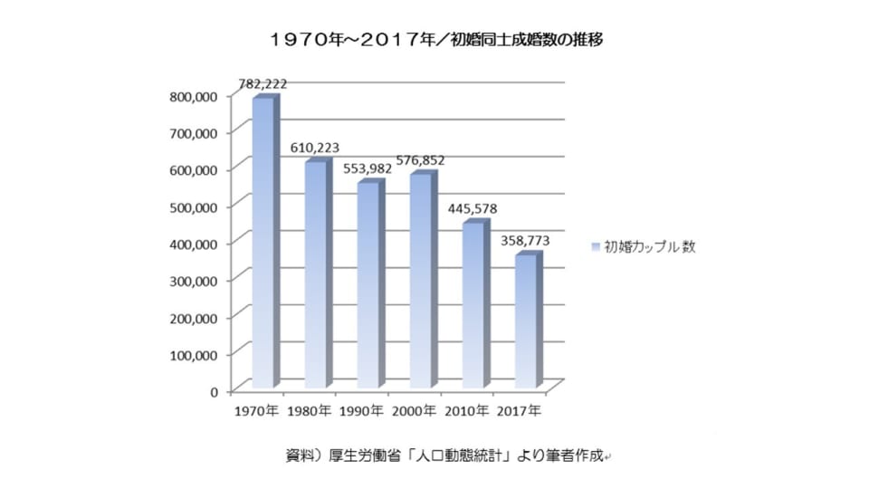 1970~2017年/初婚同士成婚数の推移 ( 2 / 4 )