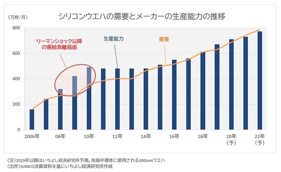 シリコンウエハの需要とメーカーの生産能力の推移 ( 1 / 1 )