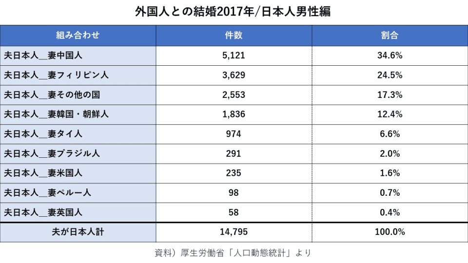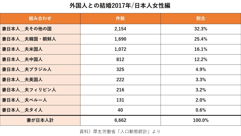 男女で相手の国籍が大きく異なる、データで読む「国際結婚」の真実