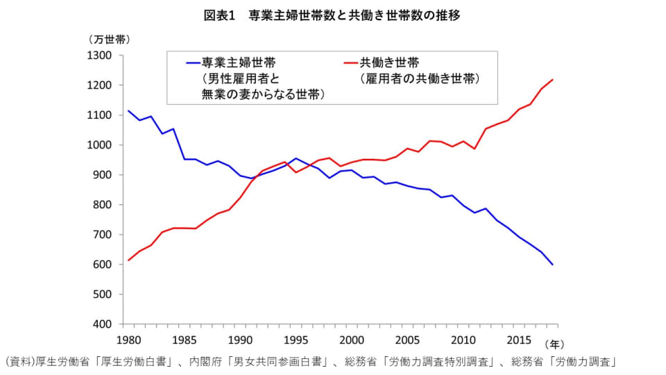 専業主婦世帯数と共働き世帯数の推移 ( 1 / 5 )