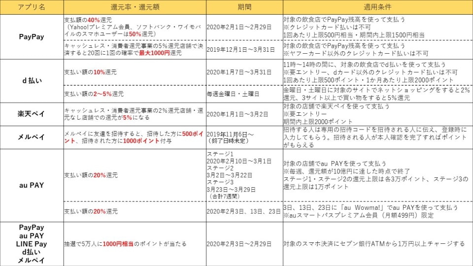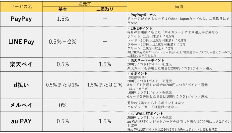 主要6アプリの還元率まとめ ( 2 / 3 )
