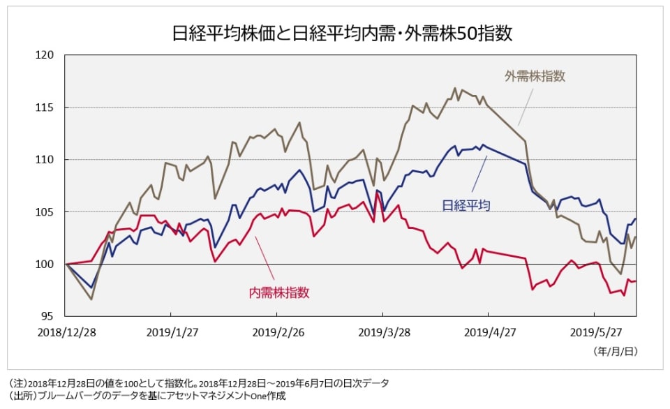 日経平均と内需株・外需株指数の推移 ( 1 / 1 )