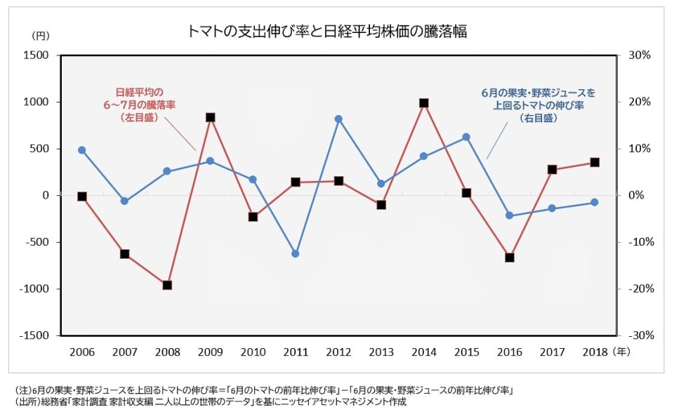 トマトの支出伸び率と日経平均の騰落率 ( 1 / 1 )