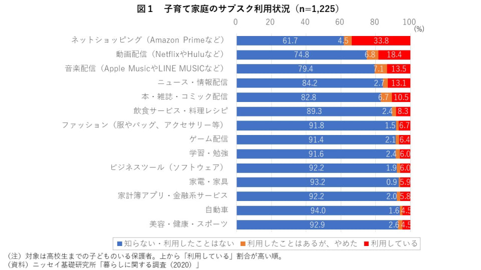 図1 子育て家庭のサブスク利用状況(n=1,225) ( 1 / 4 )