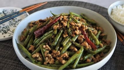 6月から9月に旬を迎えるいんげん。この時期は、みずみずしく歯ごたえも良いのでさっぱり食べたいサラダや和え物にもぴったりな食材です。ですが案外、茹で時間を見極めるのも大変。茹で時間が短いと青臭さが残ってしまい、反対についうっかり茹ですぎると、せっかくの食感を楽しめなくなることも。そこで、いんげんの食感を失敗無く楽しめる、夏にぴったりなアジア飯をご紹介します。いんげんの新しくて美味しい食べ方をお探しの方にも、とてもお勧めしたいお料理です。それは、いんげんの”ドライフライ”です。フライ、というのは英語では炒めるという意味。少ない油で、炒める時間を長くして野菜を少し脱水する調理法で、こうすることで味が染みやすくなるだけでなく他にない食感が生まれます。白いご飯との相性も◎なアジア飯。この美味しさに、きっと箸も止まらなくなるはずです。ぜひ旬のいんげんでお試し下さい。